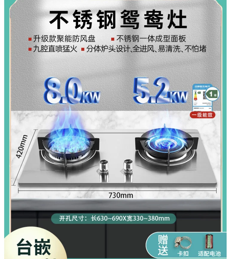 8.0KW cooktop gas stove Natural Liquefied Gas cooker Energy saving cooktop Stainless steel gas stove 2 burner Home appliances
