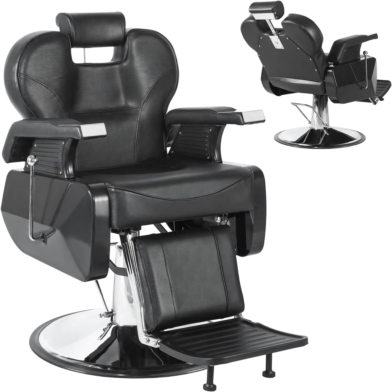 About this item COMFORT AND SUPPORT: Crafted from top class PU leather with high-density foam padding, this Hydraulic barber chair is designed to comply to the natural contours of the body, offering preferrred comfort and support for the lower back, torso, and neck, ensuring that customers really feel relaxed and comfy during use MULTI-FUNCTIONAL ADJUSTABLE: Featuring a reversible footrest and legrest with extra cushioning, along with 6 adjustable height, 135°tilt, and 360-degree rotation, this hair salonchair caters to numerous needs, offering a diverse and customized ride for either hairdressers and clients DURABILITY AND STABILITY: Built with a heavy-duty metal frame, hydraulic pump, and 27in broad chrome base, this hair stylist chair ensures steady support with a weight potential of as much as 440LBS Reinforced seams and top rate supplies warrantly long-term reliability, making it a long-lasting investment EASE TO CLEAN AND MAINTEN: Designed with waterproof aspects for straightforward cleaning, an included locking formula to safe a number of recline positions, a user-friendly hydraulic pump and one-package shipped, this barbershop chair is simple to function and maintain, maintaining upkeep costs low FASHIONABLE DESIGN: Its leading-edge design, meticulous consideration to detail, and distinctive craftsmanship give this styling chair a sense of style, setting it apart as a standout piece that boosts the general ambiance of a hair salon