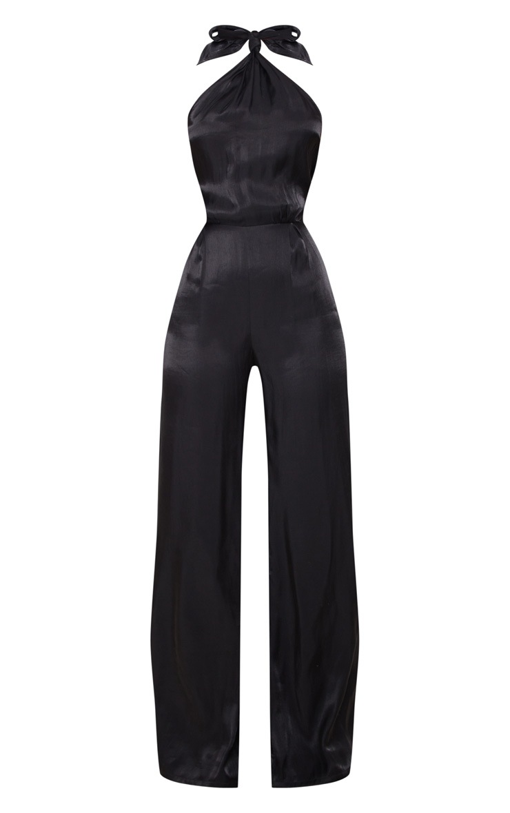Category: Jumpsuits & Playsuits Product type: Wide Leg Jumpsuit Colour: Black Material: Satin Design: Plain Neckline: Halterneck Sleeves: Sleeveless Occasion: Day Product Code: CMG8542