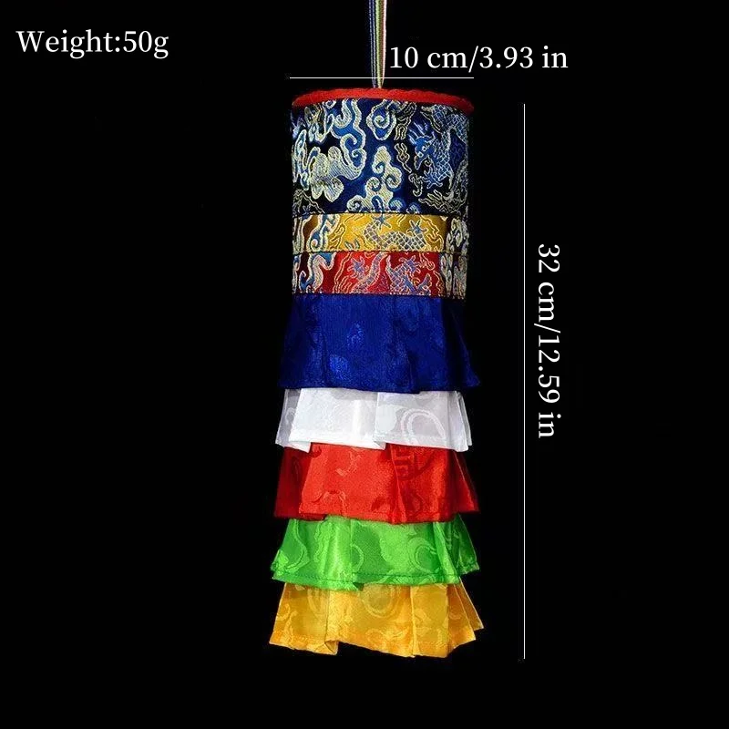 Buddhism Ribbon Colorful Flags,Cylindrical Buddha-Embroidered Pendant,Tibetan Umbrellas Banner Hanging Decoration Buddhist Item