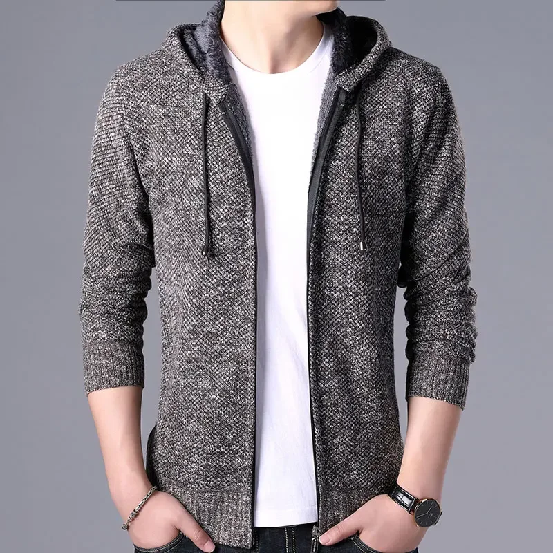 Cardigans Men Winter Sweater Korean Fashion Mens Clothing Thick Cotton Hood Cardigan Long Sleeve Casual Sweatercoats