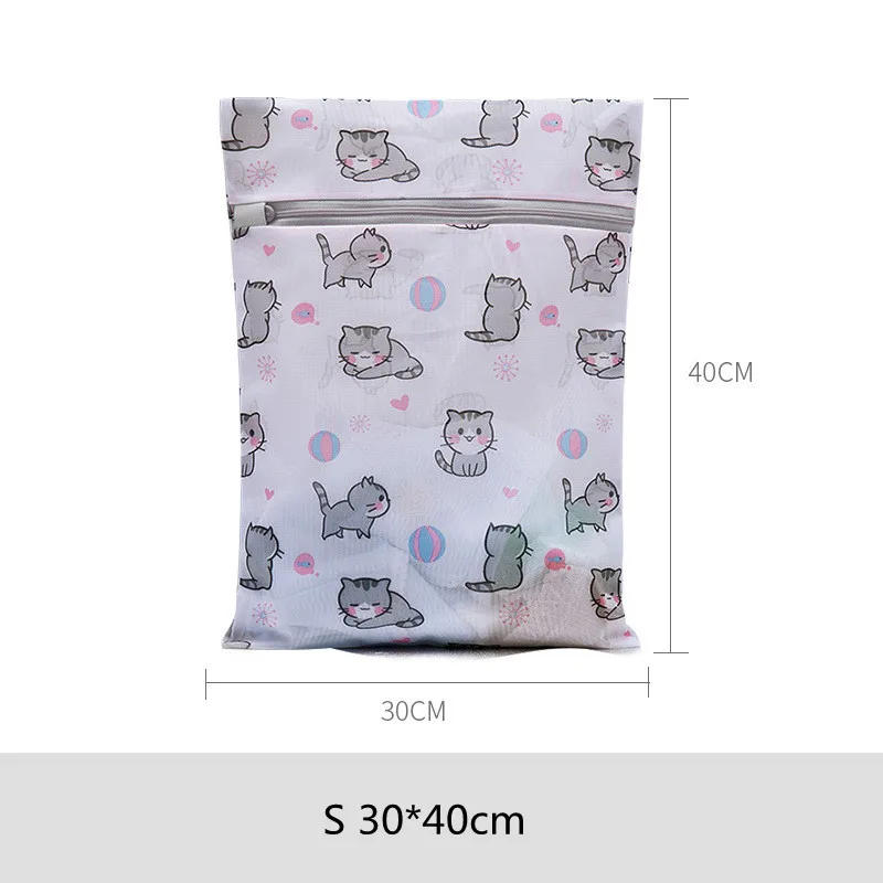 Cartoon Cat Printing Laundry Bag for Washing Machines Lingerie Wash Bags Foldable Dirty Clothes Bag Bra Underwear Laundry Basket