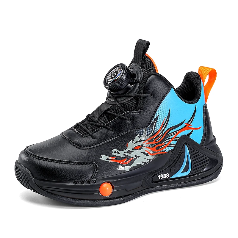 Children's Basketball Shoes Anti Slip New Leather Sports Shoes Rotating Buckle Cushioning Wear-resistant Casual Shoes for Kids