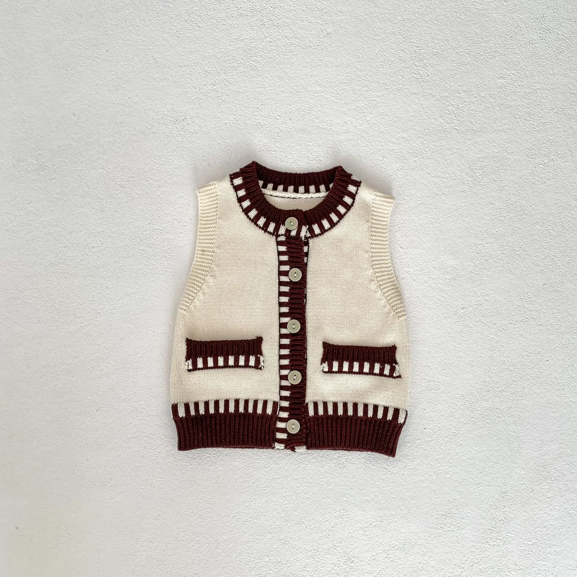 Children's Vest 2025 Spring Infant Boys And Girls Contrast Knitted Vest Cardigan Cotton Knitted Sweater