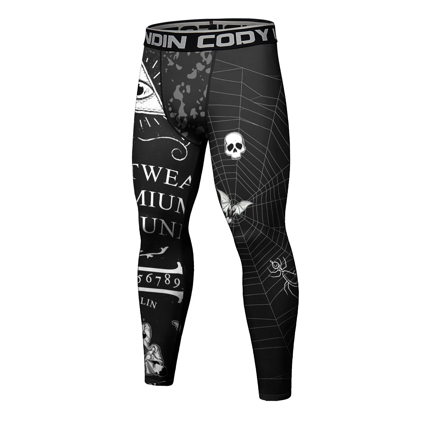 CODY LUNDIN Men's Compression Pants Workout Tights Base Layer Boxing Muay Thai MMA No Gi BJJ Legging Printed Fitness Trousers
