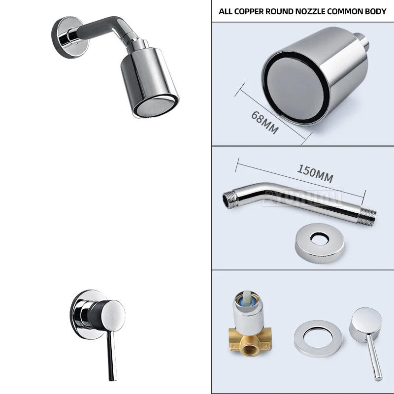 Copper Hidden Bathroom Shower Faucet Sets Brass Round Concealed Wall Mounted Shower Rainfall Head Hotel Hot and Cold Water Taps