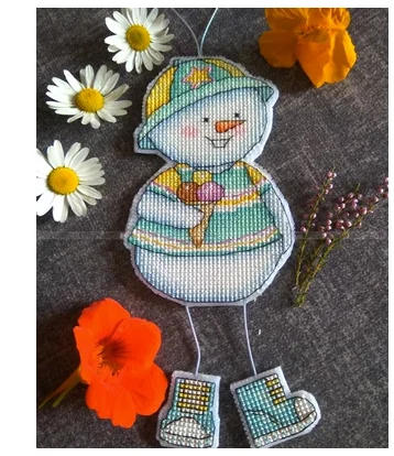 Cross stitch DMC line kit metal spring leg beads hanging feet cute snowman plastic board refrigerator sticker