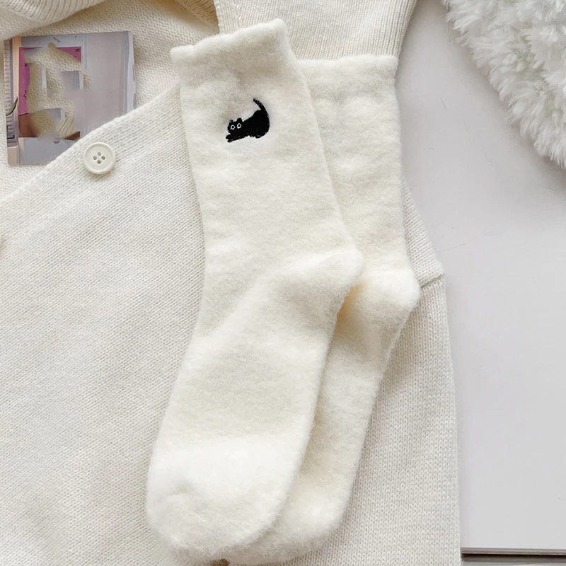 Cute Cat Mink Fleece Super Soft Socks for Women Winter Warm Thicken Coral Plush Socks Thermal Snow Home Sleep Floor Kawaii Sock