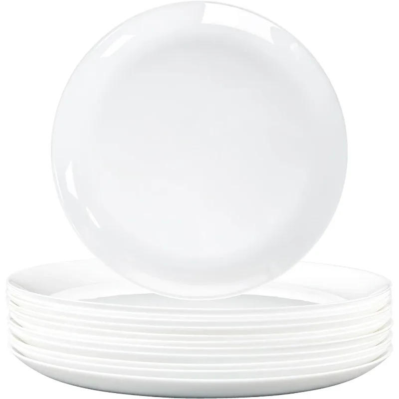 Dinner Plates Set of 12, Tempered Glass White Plates, 10-1/2-Inch Round Dish Set, Microwave & Dishwasher Safe Glass Plate Set