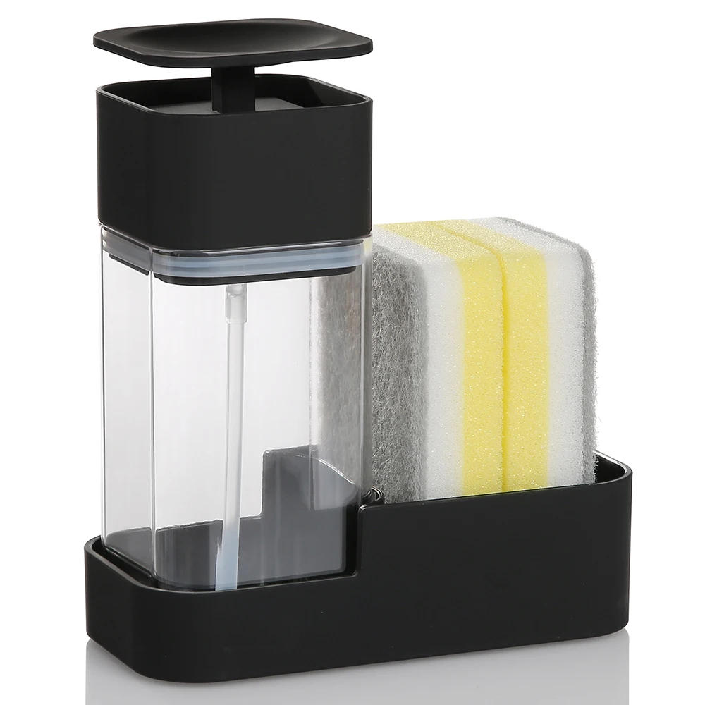 Dish Soap Dispenser Set with Sponge Holder for Kitchen Sink 15oz Clear Bottle with Black Rust Proof Pump Dish Liquid Dispenser