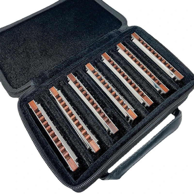Easttop PRO10 wood comb set for 7 keys Harmonica, Diatonic Blues Harmonica For Adults, Professional Player and Students This is 10 holes authentic blues harmonica set,7 keys packed,A,B,C,D,E,F,G key Material: phosphor bronze reeds(1 thickness) with welded, brass reedplate with electroplate, brass cover with electroplate and WOOD comb Packing: 7 keys harmonica into one canvasbag Content: 7 harmonica+small cloth+canvas bag We are the harmonica producer of theEASTTOP model Vintage Blues Vintage Tuning, Warm Wood Comb Tone For these gamers seeking that Little Walter sound, this tuning is it! This harmonica is precise and consistent in its attack and response with a heat and rich tone Place of Origin:China Brand Name:Easttop Model Number:PRO10 Number of Bores:10 Pronunciation Method:Diatonic Tone:C Name:10 Hole Blues Harmonica Color:Silver Type:10holes Packing:Zipper Pouch Logo:Engraved Comb:WOOD Reedplate:Brass Reed:Phosphor bronze Cover material:Stainless Steel Size:100*27*20MM Weight:0 Welcome to our shop have the finest charge as a result of we are the manufacturing facility help product customization、logo addition and product wholesale there’s anything I will help with the price, product, etc, please be at liberty to contact me E-mail:easttopharmonica@vip Whatsapp:15852589728