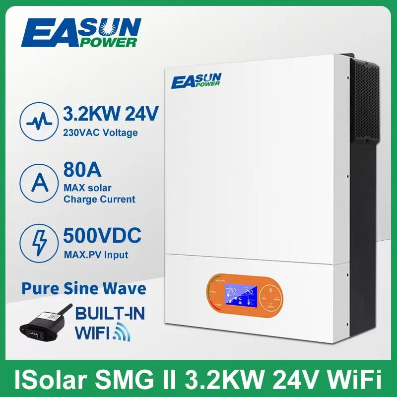 Easun Power 6000w 4000w 3200w 48v 24v MPPT Hybrid Off Grid Pure Sine Wave 120a 230v 50/60hz Solar Inverter Charger Support WIFI