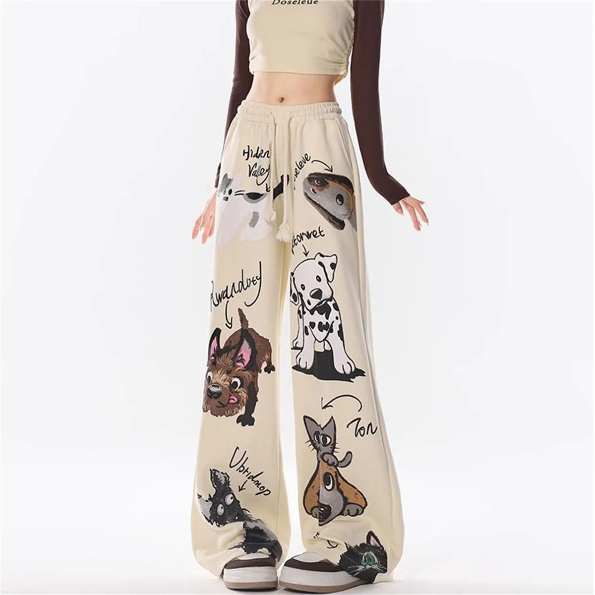 Fashion High Waist Cargo Pants Women Casual Punk Pants Gothic Pencil Harajuku Cool Trousers Fashion Hip Hop Dog Print Girl Pants