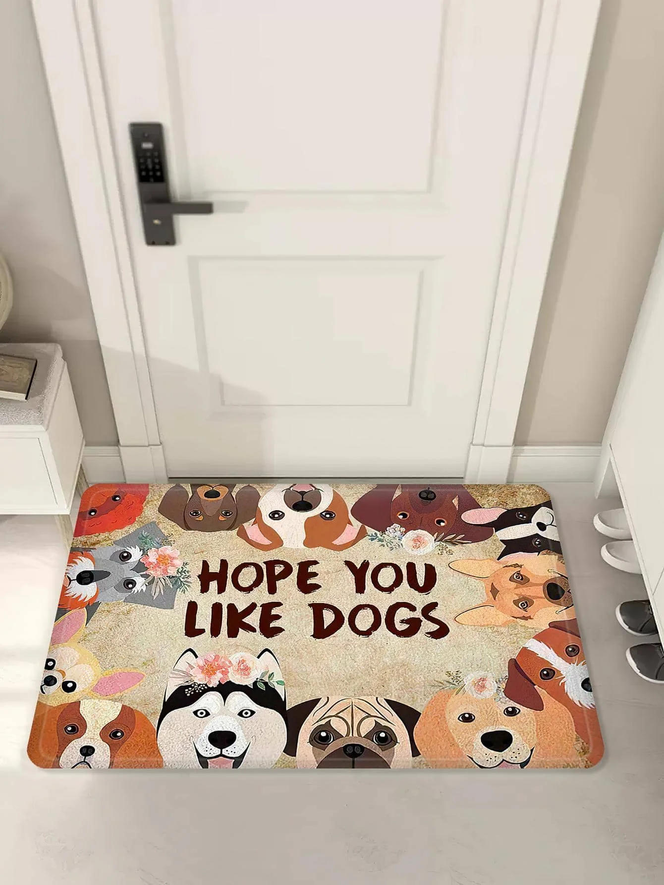 Flower & Letter Graphic Mat Modern Polyester Floor Mat Anti-slip Indoor Outdoor Rug Doormat For Living Room And Bedroom Carpet