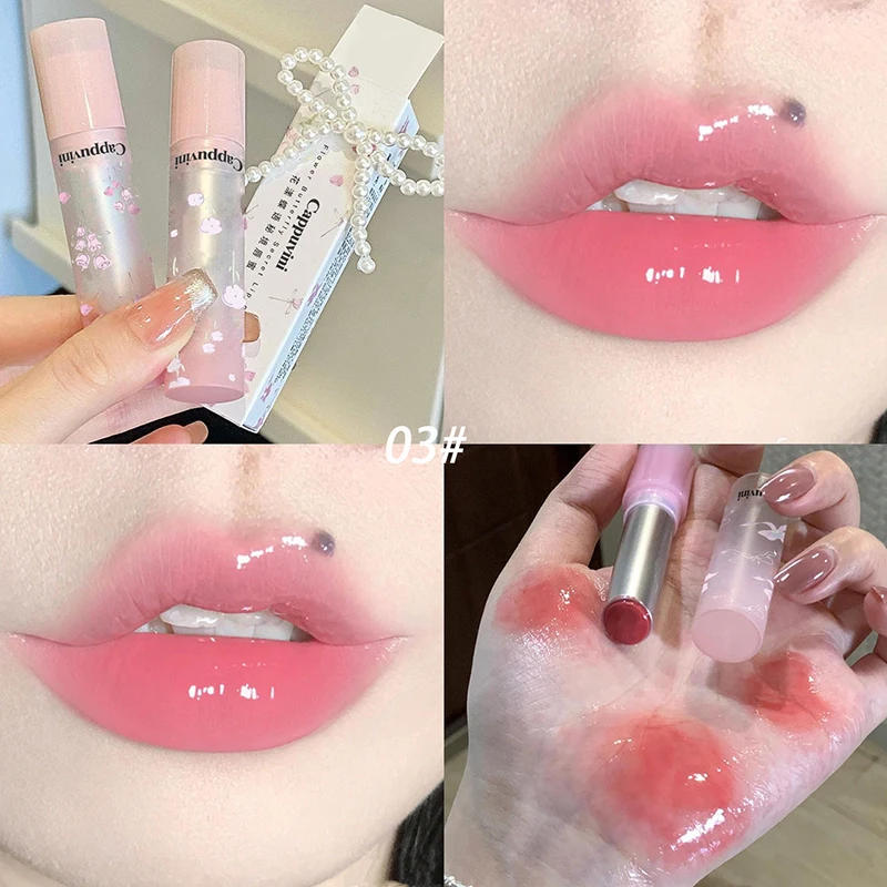 Flowers Mirror Glass Solid Lip Gloss Hydrating Shine Lip Glaze Moisturizing Peach Apricot Tint Jelly Lip Honey Lipstick Makeup