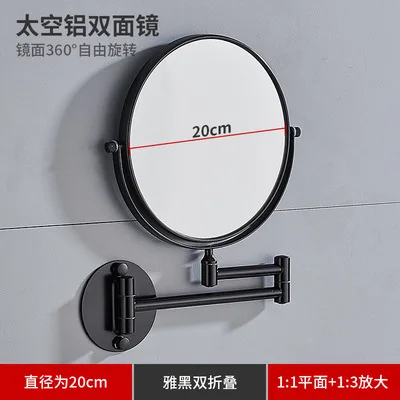 Folding Cosmetic Mirror Wall-mounted Punch-free Bathroom Accessories Telescopic Black Metal Magnifying Beauty Round Wall Mirror