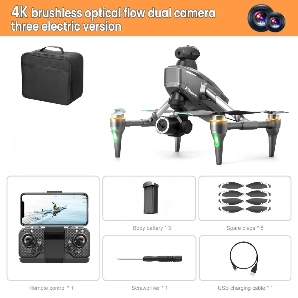 New V168 Mini Drone 8K 5G GPS WiFi FPV Professina HD Aerial Photography Dual-Camera Quadcopter Brushless Avoidance Optical Flow Features: Frequency : 2 Channel : 4CH Quadcopter battery : three 1800mAh LiPo (included) Single battery life : 15-20minutes Charging time : 60 mins Remote control distance:1000M Colour: Black Camera options: 2 WiFi 4K HD/2 WIFI 6K/2 WIFI 8K Angle:Remote control digital camera adjustable 90 ° Size: Product folded size (CM): 18*12*7cm Product advancement length (CM):20*18*18cm Description: -With foldable arms, compact and straightforward to carry -GPS positioning mode can give extra accurate flight -With altitude keep mode operate to -provide steady flight -Orbital movement will allow the plane to fly in circles, offering cooler digital camera angles -Waypoint flight mode, simply draw a course on display with the helicopter as the given route -Flight time of as much as 15-20minutes -No should alter the position of the plane earlier than flight -One-touch return function, you might smoothly discover your manner home -One-touch take-off/landing One button auto take-off or landing, the drone will mechanically take off or return to the take-off function -With low power protection over recent defense -Interference immunity using 2 know-how - 4channels, can fly up, down, forward, backward, left and correct -Six-axis gyroscope for extra steady flight and simpler control -The quad-rotor fuselage is fabricated from strong, high-strength engineering plastic, light-weight and durable Four approach impediment avoidance, gentle move hovering, colourful lights, gentle control, The digicam can be remotely managed and electrically adjusted up and down via ninety degrees, Fixed height function, six band gyroscope, One click on calibration, one click takeoff, one click on landing, Ascending and descending, transferring ahead and backward, flying left and right, turning, headless mode, Body light/nose gentle (camera can add functions: gesture photography, video recording, headless mode, emergency stop, trajectory flight, gravity sensing, music, 50x zoom, automated photography) Accessories: 1 xAircraft 1 xRemote transmitter 1 xBody battery 1 xSpare blade 1 xUSB cable 1 xScrewdriver 1 xBuilt in high-definition camera 1 xInstructions 2 xWIFI guide
