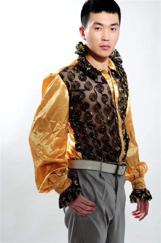 Free shipping fan collar prince stage sequins decoration mens tuxedo shirts party/event shirts latin dance performance shirts