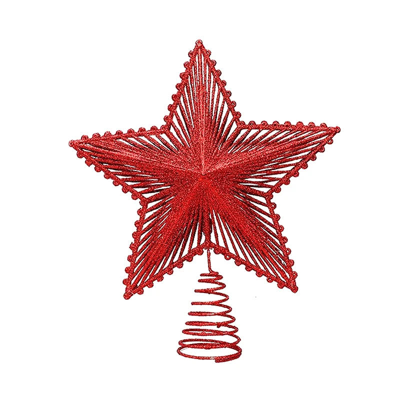 Glitter Christmas Tree Topper Star Decor Hollowed-out Pentagram Xmas Tree Topper Ornaments New Year Party Home Decor