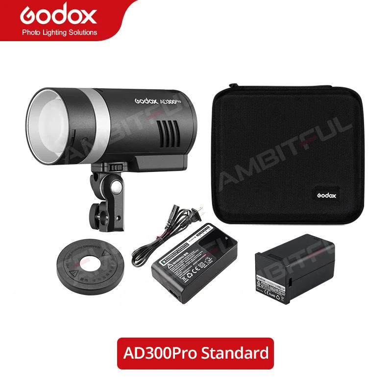 Godox AD300Pro Outdoor Flash Light 300Ws TTL 2.4G 1/8000 HSS with 2600mAh Battery for Iconic Brand Nikon Iconic Brand Fuji Olympus Pentax