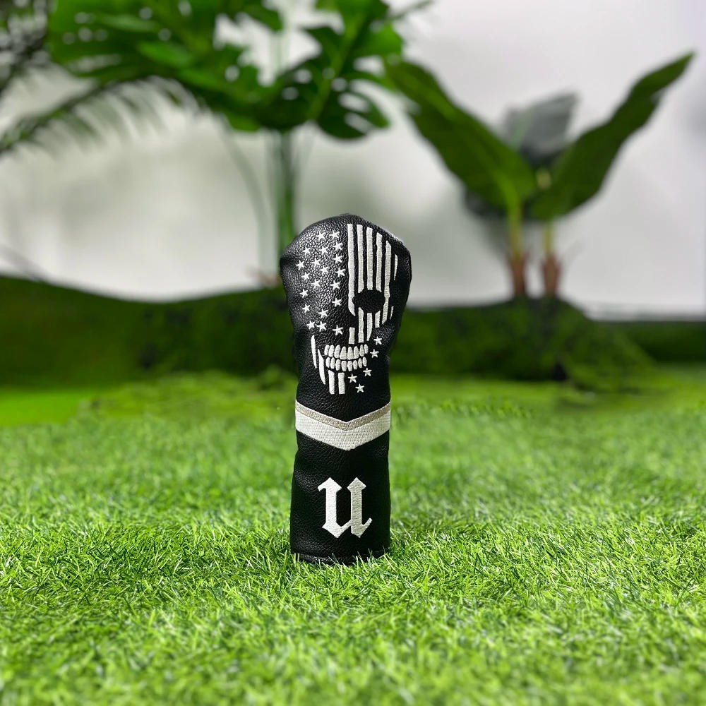 Golf Skull Skeleton Head Cover Golf Club Black Leather Headcovers Set Fits Driver Fairway Wood Hybrid