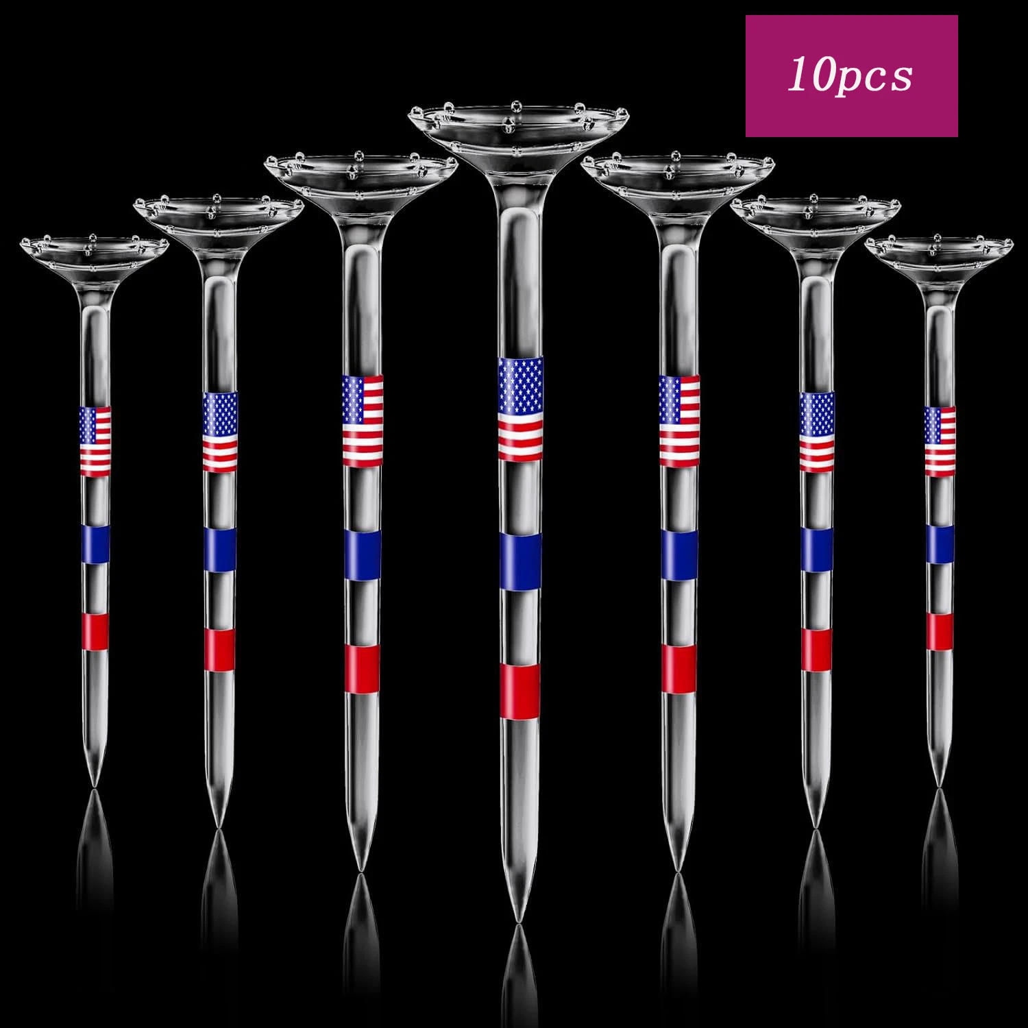 Name: Golf spikes Color: 10pcs, 25pcs, 50pcs material: plastic Size: 8 Weight: 15g/38g/75g List: golfing spikes*10/golf spikes*25/golf spikes*50 Unbreakable Plastic Golf Tees - These plastic golf tees out survive wood and feature a nearly unbreakable lifespan Its clear acrylic materials and American flag-style design give it an inventive look REDUCED FRICTION - The golfing tee's raised 8-claw design minimizes touch between the tee and ball, maximizing distance and accuracy MAINTAIN STABILITY - The extensive cup design of those long golf tees ensures ball balance and helps make tee pictures easy HEIGHT MARKINGS - Use three 1/4" golfing tees with peak colour markings to make sure you get the best tee top at any time when Customize the peak on your desire for greater consistency on your golf photographs Men's Golf Gifts - Experience the elegance of a delicately packaged 10/25/50 piece golfing tee bulk set Each tee undergoes rigorous inspection and precision processing, making it the ideal reward for any golfing enthusiast Unbreakable Plastic Golf Tees - These plastic golf tees out live wood and feature a nearly unbreakable lifespan Its clear acrylic material and American flag-style design give it an artistic appearance REDUCED FRICTION - The golf tee's raised 8-claw design minimizes contact between the tee and ball, maximizing distance and accuracy MAINTAIN STABILITY - The huge cup design of those long golfing tees guarantees ball stability and supports make tee shots clean HEIGHT MARKINGS - Use 3 1/4" golfing tees with top shade markings to ensure you get the ideal tee peak at any time when Customize the height on your choice for greater consistency on your golf photographs Men's Golf Gifts - Experience the class of a carefully packaged 10/25/50 piece golfing tee bulk set Each tee undergoes rigorous inspection and precision processing, making it the ideal gift for any golf fanatic