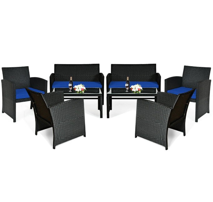 Goplus 8PCS Patio Rattan Furniture Set Navy