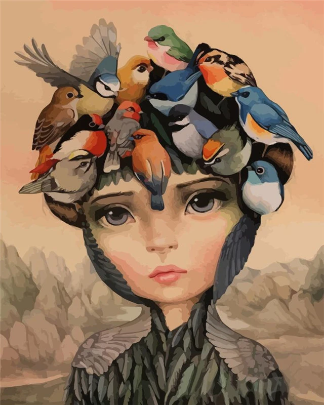 HUACAN Paint By Number Girl DIY Pictures By Numbers Bird Kits Hand Painted Painting Art Drawing On Canvas Gift Home Decor