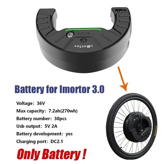 Specification â— Brand: AJOOSOS iMortor â— Type: electric motorcycle conversion package Front Wheel â— Material: rubber tire, aluminum alloy hub, ABS + PC motor shell â— Applicable: 24", 26", 27", 29", 700C mountain bike, street bike, city motorbike and so on â— Applicable Condition: Front fork with a drop out of 10*100mm quick released â— Battery: 36V / 259 / 7200mAh lithium-ion battery ( integrated ) â— Charger: EU/US/UK/AU Charger â— Motor: 350W brushless DC motor â— Max speed: 45km/h â— Range: 50km â— Net Weight: 8kg â— Gross Weight: 12 â— Max load: 180kg â— Package Size(L x W x H): 70 x 70 x 22 cm Package Contents 1 * Hub Motor 1 * Front Wheel with Tire 1 * Charger ( EU/US/UK/AU plug) 1 * Battery 1 * Phone Holder ( for the APP version only) 1 * LCD demonstrate with thumb throttle ( for the LCD version only) 1 * Set of the Installation software 1 * Manual ã€5 Speed Modes】 Physical Exercise - 6/mile/h(10-15km /h) ,ECO - 9/h(15-20km /h) ,Economy - 12/h(20-30km /h) ,Sports - 18/h(30-35km /h), Climbing - 21/h(35-40km /h) ã€Battery】 â— The Detachable Lithium Battery of the Imortor 3 Electric Bike Front Wheel equipment is upgraded from 3 to 7 which allows Longer Battery Life and Riding Distance: Rated Speed 25km/h, Max Range 40km â— Supplying with a mobile phone holder with the USB port in the battery to payment your cellular machine during a journey FAQ 1 My bike is 28 inch, which one may well I choose? Re: Mostly, you could desire the 700C rim (inner diameter- 598mm, outer diameter- 652mm) But you Could ship us the detailed specification of your tire for confirmation 2 Could I want a 20" rim and tire? Re: No The iMortor 3 would not have the 20inch wheel since the 20inch rim too small to make a good wheel with the spokes 3 Does the iMortor wheel match my bike? Re: The iMortor3 front ebike conversion package obtainable for various sorts of metropolis bikes, mountain bike, avenue motorbike which with front fork dropouts of 100mm/10mm short released, tire length 24", 26", 27", 29", 700C 4 How to make a decision the correct wheel and tire(tyre) size? Re: To ensure you order the right size of tire, one can find the marks your motorbike tire five Does the equipment include throttle? Re: If you choose the "Display version", it will include the thumb throttle (NOTE: APP edition doesn&;t include the throttle) 6 How to brake? Re: Using the unique brake of your motorcycle