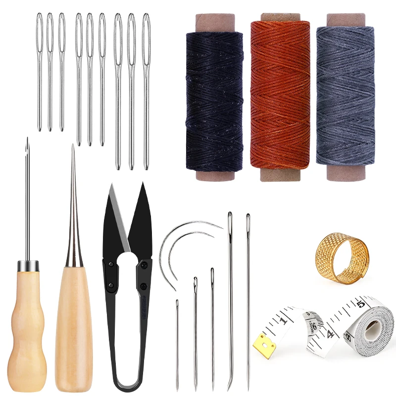 IMZAY Leather Sewing Kit With Waxed Thread Large Eye Leather Sewing Stitching Needles Tape Measure Leathercraft Sewing Tools Set