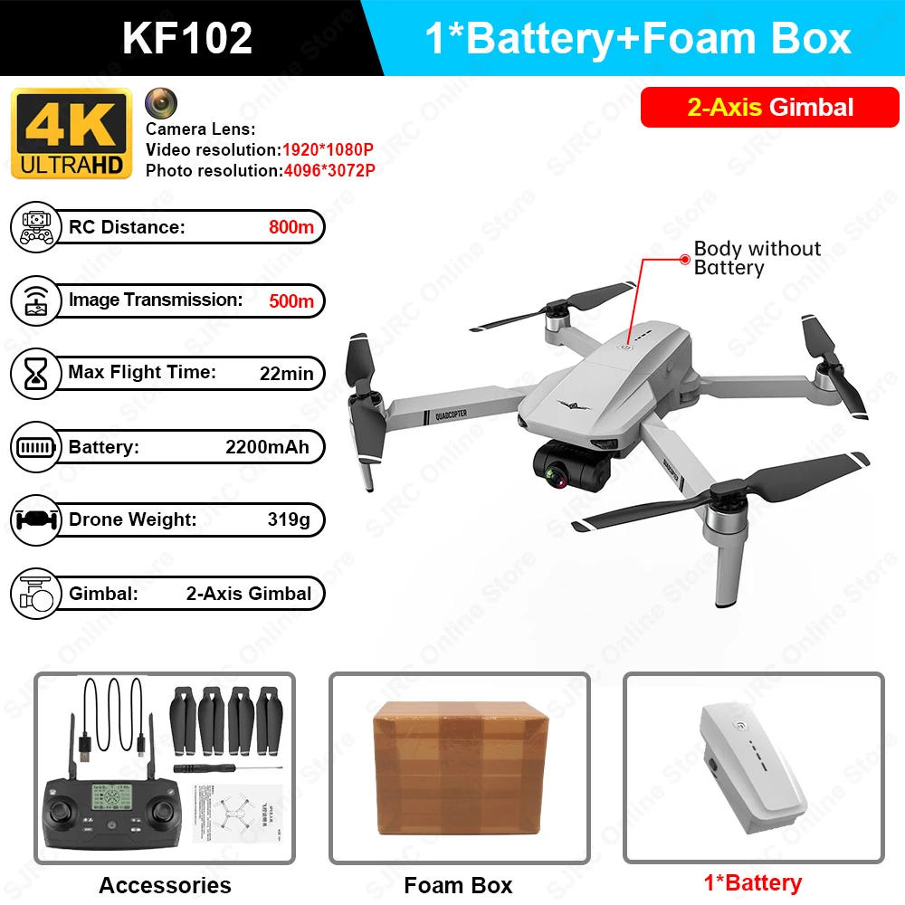2022 New KF102 Max GPS Drone 4k Profesional FPV HD Camera Drones Note: This hyperlink entails KF102/KF102 Max, please test the product attributes when purchasing SJRC Online Store KF102 Drone 4K Professional SJRC Online Store KF102 Drone 4K Professional Features: 1 Max provides 360° obstacle avoidance function 2 mode and Optical move mode dual mode 3 go back to start point and point with low power and no signal 4 Smart following: After the plane left the GPS, it will open the APP following function, and the aircraft will stick with the cellphone In addition, Image Following: Detect the shooting object and follow the flight mechanically 5 images and recognition: Within 1-3m of the plane, make photographic gesture / photographic gesture in entrance of the digicam 6 multi-point planning flight: the plane autonomously fly after the pre-set route, the participant focuses on capturing 7 surround: Find the middle of the surround, and then move the desired surround radius during the rocker 8 and remind the drone: Click at the GPS sign icon 3 times, open the map interface, the map shows the closing distance of the aircraft, size and latitude position 9 Gimbal make picture extra clean SJRC Online Store KF102 Drone 4K Professional - 4K digicam - Mechanically stabilized gimbal - 360° impediment avoidance - About 30 minutes of battery lifestyles - About six hundred meters remote control distance - GPS positioning and return - 360° Surround mode - Smart keep on with - Runaway - Smart modular battery - 5GWiFi - Fixed-point flight - one key return - Real-time transmission - 50x zoom - Gesture photograph - Brushless Motor -Portable folding SJRC Online Store KF102 Drone 4K Professional 360°LASER OBSTACLE AVOIDANCE NO LIMITS TO TRAVEL, NO WORRIES ABOUT FLYING Agile as a bird of prey because it wanders during the woods and round structures impediment avoidancein more complex eventualities and when flying at evening SJRC Online Store KF102 Drone 4K Professional Follow thecamera to bypass boundaries Crossing thecorridor to circumvent boundaries Night timeobstacleavoidance SJRC Online Store KF102 Drone 4K Professional TAKE A DIFFERENTPICTURE AS YOU LIKE SJRC Online Store KF102 Drone 4K Professional Mechanically stabilized head 4K HD Camera SJRC Online Store KF102 Drone 4K Professional ENHANCED MECHANICALSTABILIZATION GIMBAL Enhanced mechanical stabilization of the gimbalcan larger get rid of digital camera shake and shake,and upgrade digital camera picture high quality In addition, the gimbal structure has been redesigned to be more steady and difficult SJRC Online Store KF102 Drone 4K Professional Mechanical gimbal + digital stabilization Ordinary PTZ SJRC Online Store KF102 Drone 4K Professional 4K one hundred twenty WIDE ANGLE Professional aerial photography experience SJRC Online Store KF102 Drone 4K Professional 4K PIXELS FINE AND STABLE IMAGING QUALITY High-defnition pixels carry exquisite and wealthy image quality, making your aerial creation more loose and simple to shoot movie-level images SJRC Online Store KF102 Drone 4K Professional 4K HIGH-DEFINITION MOVIE LEVEL, HIGH-DEFINITION ZOOM The drone uses a CMOS sensor, which can take 4K movie-level pixel photos, entirely preserving the advent details, and the texture is near to blockbuster movies SJRC Online Store KF102 Drone 4K Professional PLAY WITHOUT HINDRANCE UNIMAGINABLE FLYING EXPERIENCE Have a different beauty on your hands SJRC Online Store KF102 Drone 4K Professional “GPS SMART RETURN NO MATTER HOW FAR AWAY YOU ARE" GPS fixed-point fixed-hover hover, in the case of GPS satellite signals, can effectively preserve the plane stable in the course of the fixed-point hover throughout flight! SJRC Online Store KF102 Drone 4K Professional GPS FUNCTION A number of GPS positioning black technology Runaway When it loses control, it's going to return ,When the battery is too low, Low battery go back domestic automatically it's going to go back home automatically SJRC Online Store KF102 Drone 4K Professional Over-distance return When the gap is exceeded,Return home automatically One key go back Return domestic smoothly with one button through handheld remote control SJRC Online Store KF102 Drone 4K Professional POWERFUL BRUSHLESS POWER LEVEL 7 WIND RESISTANCE Brushless Motor - Low interference Low noise - Running smoothly lengthy life - Low maintenancecost SJRC Online Store KF102 Drone 4K Professional 7 2200MAH LARGE CAPACITY MODULAR BATTERY LONG BATTERY LIFE AND EASY REPLACEMENT Intelligent design, energy saving and power saving, real-time power exhibit SJRC Online Store KF102 Drone 4K Professional GPS ACCURATE POSITIONING + OPTICAL FLOW HOVERING Outdoor GPS positioning system, buying satellite tv for pc indicators toensure that accurate positioning is no longer lost throughout long-distanceflight, real-time insight of optical move news for picture records calculation,and accurate soaring with out manipulating the drone SJRC Online Store KF102 Drone 4K Professional SURROUNDED BY POINTS OF INTEREST Take a stunning and wonderful film with a 360 ° surround flight shooting angle of view SJRC Online Store KF102 Drone 4K Professional SMART FOLLOW In the GPS positioning mode, control the drone to flyat a distance of 5-30 meters from the operator, and turn at the APP follow function, the drone can robotically keep on with the operator&;s motion and take photographs SJRC Online Store KF102 Drone 4K Professional ROUTE PLANNING FLIGHT The APP map accurately points, and you'll fly the place you would like fly SJRC Online Store KF102 Drone 4K Professional VR 3D EXPERIENCE Through the cellular phone APP, the 3-d VR functioncan be turned on, and the mobile phone would be equippedwith VR glasses, and the capturing images could be &;viewed with real vision,which is extra surprising SJRC Online Store KF102 Drone 4K Professional 2021 New KF102 GPS Drone 4k Profesional FPV HD Camera Drones