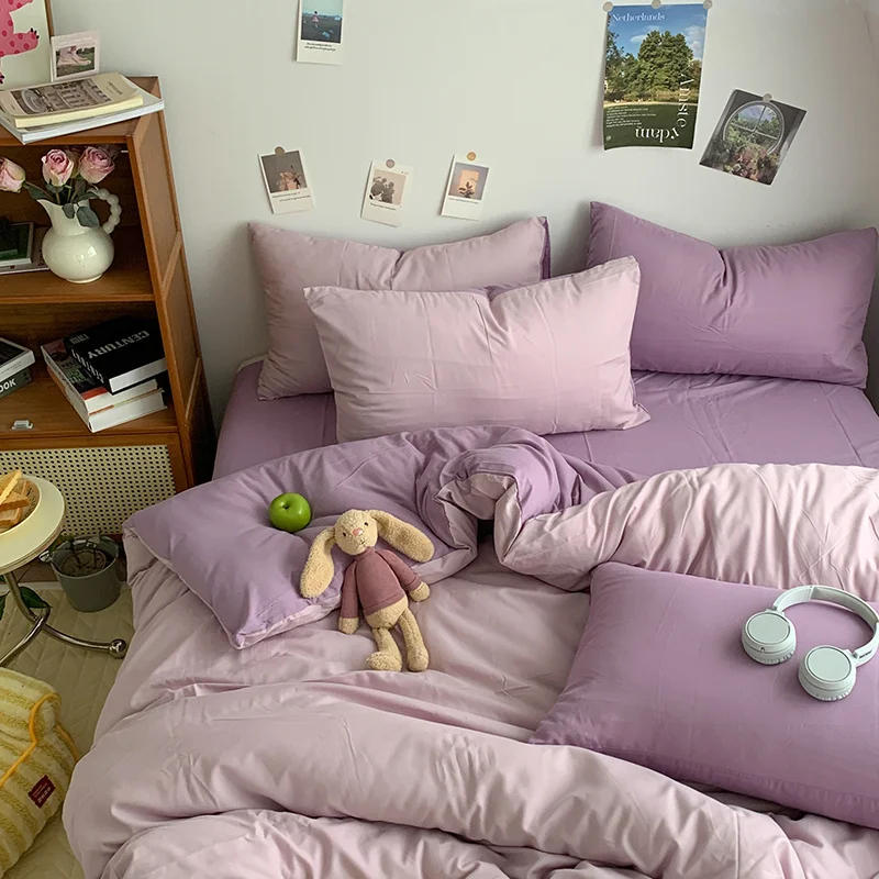 Light Blue Duvet Cover Set with 2pcs Pillowcase INS Style Soft Comforter Covers for Queen King Reversible Fashion Solid Bedding