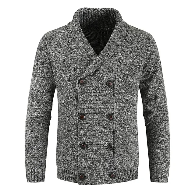 Men's Fashion Winter Wool Cardigan Sweater Double Breasted Cashmere V Neck Men Large Size Long Cardigan Men Pull Homme clothing