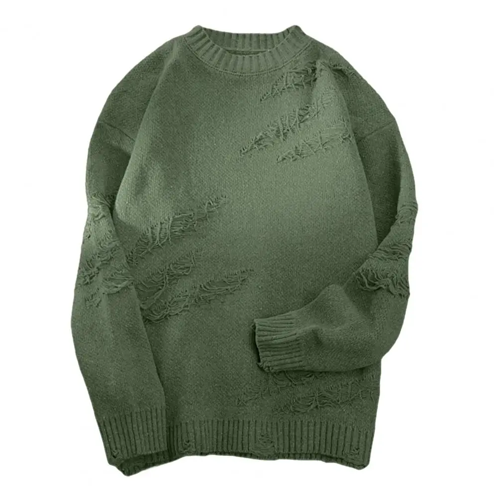 Men's Winter Sweater Round Neck Hole Solid Color Knitted Thickened Long Sleeve Pullover High Street Hip Hop Warm Sweater