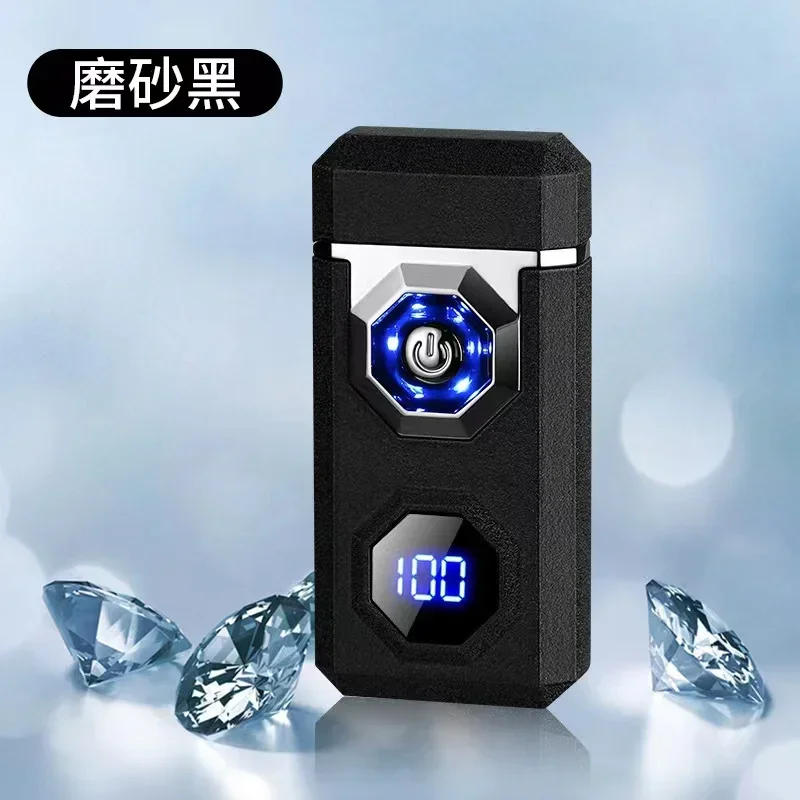 Metal High Power Windproof Arc Charging USB Lighter Outdoor Strong Light Large Capacity Battery Level Display Electric Lighters