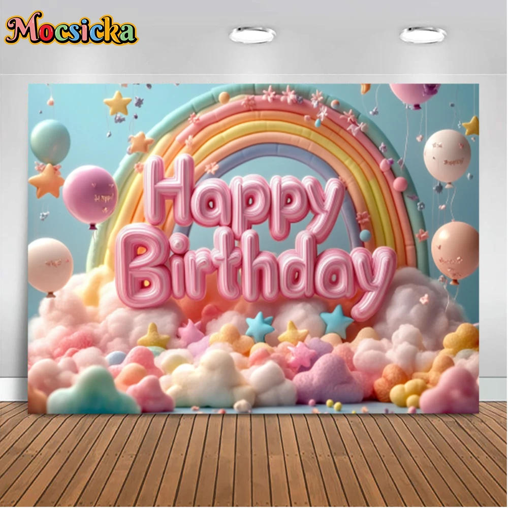 Mocsicka Photography Backgrounds Rainbow Balloons Clouds Cake Smash Birthday Party Children Portrait Photo Backdrops Studio