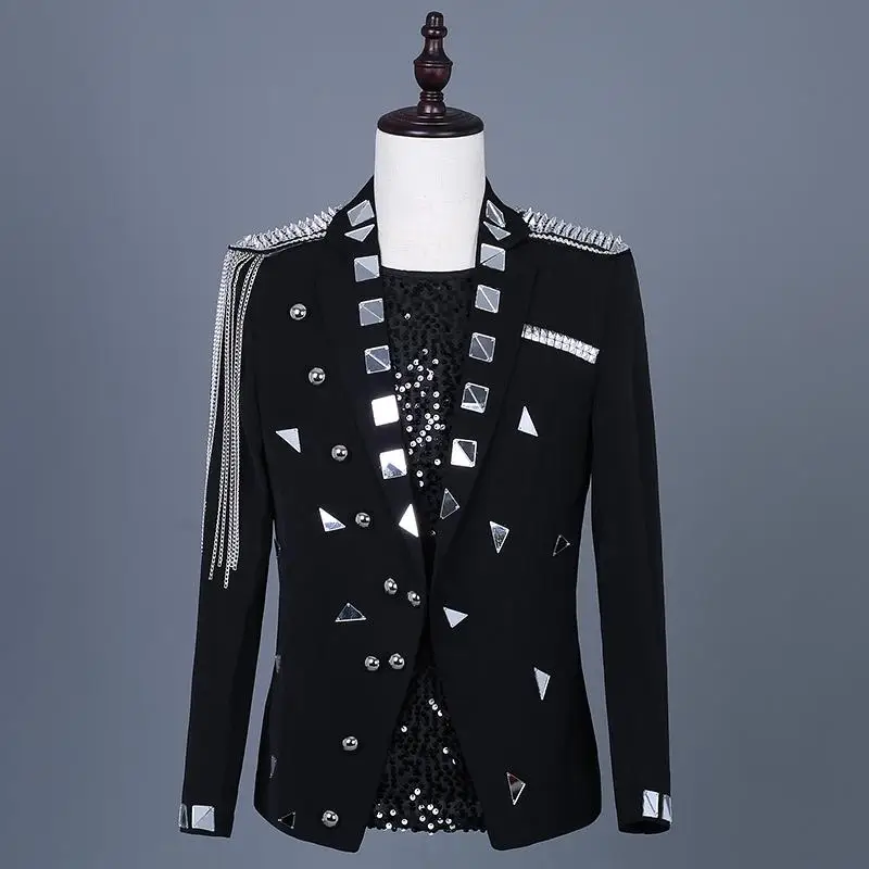New Men's Party Blazers Coat Singer Dj Nightclub Guest Star Wedding Dress Lens Tassel Performance Clothing Bar Stage Costumes