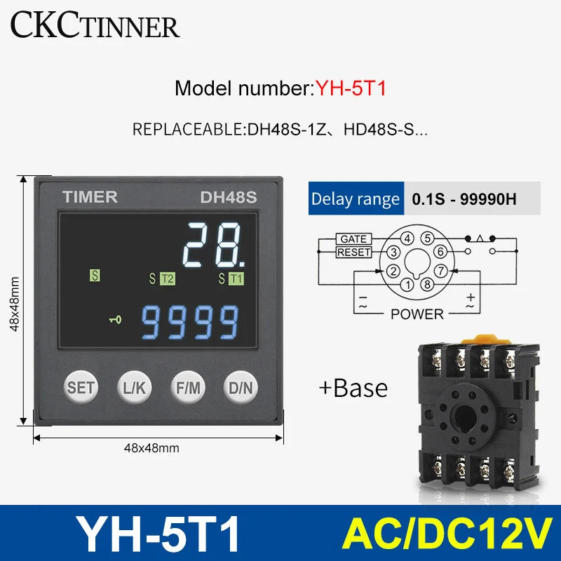 Product name : Time relay Model: YH-5T1 / YH-5T2 / YH-5TH / YH-5TA Voltage: 24V DC/AC 220VAC -----YH-5T1 : Cycle relay / Delay relay Can replace DH48S-S, DH48S-1Z , ( Can be paused and reset ) -----YH-5T2 : Delay relay Can replace DH48S-2Z ( Two units of delay output ) -----YH-5TH : Delay relay Can replace DH48S-2ZH ( One set of Instant activation , One set of delay ) -----YH-5TA : Delay relay Can update DH48S-A ( Two sets of put off output ,Can be paused and reset ) New DH48S time relay