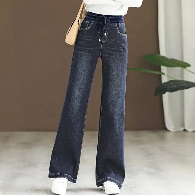 Oversize 34 Casual Baggy Jeans Women Elastic High Waist Vintage Wide Leg Vaqueros Spring Denim Pants Lace Up Straight Pantalones
