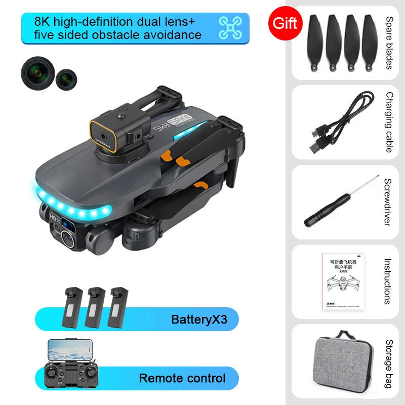 P14 Max GPS Drone Profesional 8K HD Camera Intelligent Obstacle Avoidance Brushless Foldable Quadcopter RC Distance 9000M Package data: -Package size: 19cm*25cm*8c -Drone weight: 230g-Box material: colour field + storage bag Product includes: P14 Drone * 1batteryremote management * 1Obstacle avoidance device*1Fan blade*4USB cable*1Screwdriver*1Instruction Manual*2 product data:-Product description: Brushless aerial photography folding drone-Color: Black/Grey-Drone size:Folded: thirteen * 13 * 15cmOpen: 28cm*28cm*7cm-Material: plastic steel electronic components-Receiving frequency: 5G-Number of channels: 6-channel 6-axis gyroscope-Appearance: folding drone-Age of use: 14+ Battery motor parameters: Charging method: USB data cable chargingRemote management mode: left hand throttle (right hand direction)Use time: about 40 minutesSpeed level: multi-speed adjustmentRemote management battery: AA*3 should be bought individually Camera data: Resolution: 4K/8kAngle: electrical adjustment: 540°Transmission distance: 3000-5000 metersTransmission signal: WiFi transmission1 The entrance lens is placed with wide-angle 8K high-definition WIFI, and the optical circulate high-definition lens at the backside can change the digital camera angle The servo gimbal design increases stability, including EIS digital anti-shake, the image traces are clearer Altitude-fixing function It has the function of altitude-fixing mode, optical stream positioning and fixed-point function, and the flight is secure Ultra-long battery lifestyles three 3000mAh lithium-ion battery, battery life is ready 35 mins Customize the course You can draw the picture you desire to fly at the APP APP cellular phone control, one-key return, headless mode, up and down, forward and backward, left and correct facet flight Gesture camera, optical circulation positioning, brushless motor, large long battery life, impediment avoidance gimbal components, no collision to stop when encountering limitations Brushless motor gives more potent power and longer provider life8 5GHz anti-interference technology, six-axis gyroscope, more secure flight, extra handy control 540° all-round obstacle avoidance, now not scared of crashing The product is light in size and weight, which might keep away from aviation control