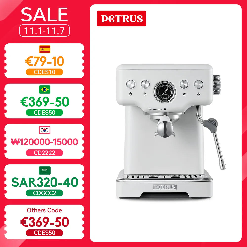 Petrus Espresso Coffee Machine Stainless Steel Coffee Maker With 58MM Portafilter Commercial Steam Wand Milk Frother For Latte C