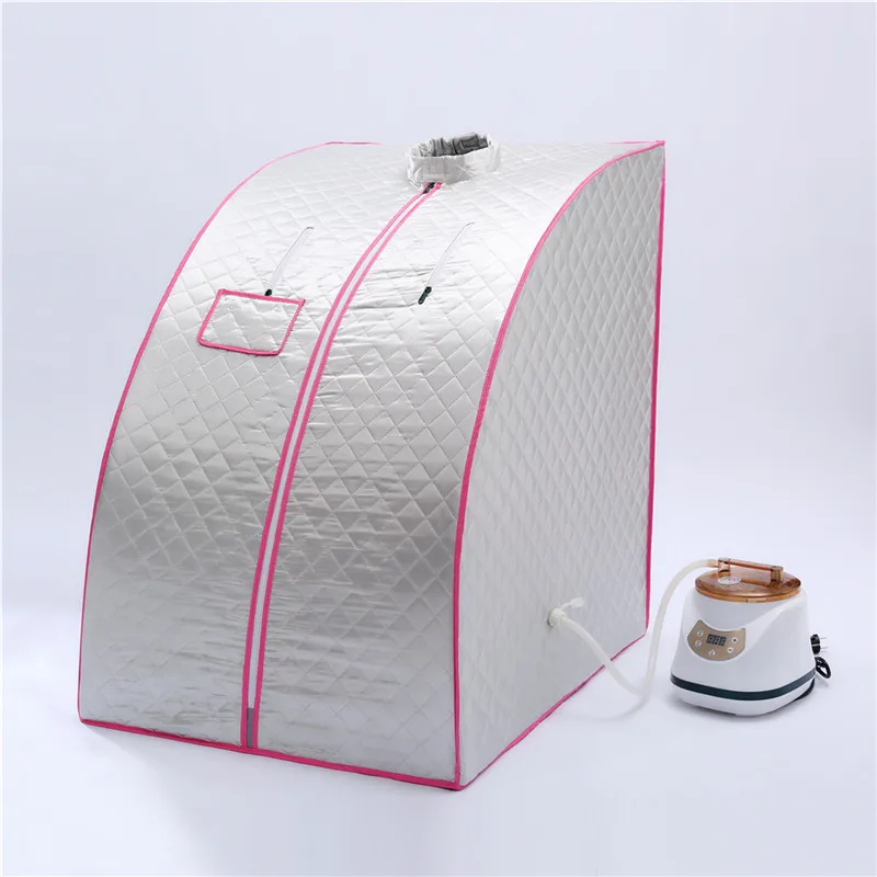 Main Features : 1 Buring energy and sweat off your more fat then hold narrow and healthy 2 One sq. meters max using space, more comfortable 3 Several dollars Using cost each time, ecomonic four Easy to function with sensible wilress remote control to set time and temperature 5 Timer differ 0-99mins and heating in nine levels, Stainless steel pipe assist 6 More safe and eco-friendly with SASO, CE, ROHS, FCC, ERP approvals 7 Double Safety protection with Anti-dry Burning and automatic strength off eight Home Spa, No worry about privacy and public bathing Technical Data: Voltage Power: AC110V-220V/60HZ/50HZ 1500W,US, EU,AU Plug Capacity: three liters (ABS Plastic+Stainless Steel Pot Inside) Material of Tent: Water evidence material with cotton inside,Stainless steel bracket with firm, more durable; Benefits From Steam Sauna: Weight Loss, Calories Burned,Relaxes tired and aching muscles,Relieves joint and muscle pains, improves circulation,Helps maintain pores and skin healthy,Improves bodytone,Rapid aid for arthritis and rheumatism,Relieve stiffness and relaxes the body,Relive fatigue more easily ,Improve sleep quality and many others Easy to use Easy to store: Package Included: 1 x Steam Generator 1 x Sauna Tent 15 x Stainless steel pipes 1 x Herb Box 1 x Remote Control 2 x Hoses 1 x Connector 1 x English Instructios