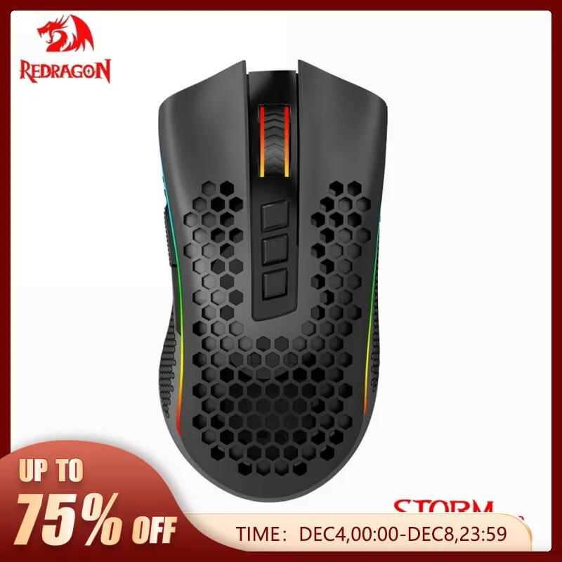 2.4Ghz Wireless Mode - Redragon M808 honeycomb gaming mouse designed in dual mode, that’s M808 Storm Pro. 2.4Ghz wireless mode leaves 0 limits of your aiming, nothing in the way to victory. Aesthetics of Hive - The cutout honeycomb shell covered with comfy frosted finish gets you the essential buff for PRO, offers unlimited possibilities and infinite potential to maximize your aim.Non-Stop Gaming - Built-in a rechargeable battery, the mouse can stays online easily during your daily routine. Eco mode maximizes the durability of the mouse for long-term use. Battery: 700 mAh Rechargeable Lithium Polymer batteriesChange Your DPI/RGB - 100 to 16000 DPI and 16.8 Million colors are all customizable with software support, engineer your preferred way to win. Battery status is also monitorable on the software page.Dual Mode, Limit-Breaker Easy to switch through wireless and wired mode and get fully charged with USB-C cable for only 4 hours.1000 Hz Polling Rate with 40G acceleration can be activated in any mode.7 Programmable Buttons - All buttons are available for redefinition and assignment of complex macro keybindings, easy to deal with any impossible mission that comes your way.Wireless/wired, 2 ways to use-2.4Ghz wireless and USB-C wired mode combination, dual mode, 2 side buttons MMO gaming mouse function.Wireless/wired mode plus easy-to-access keyboard shortcuts maximize your damage.2.4G Wireless and Cable - Not only the material and design of the mouse itself, but also the cable is made of the lightest material to kill the weight and the friction as much as possible.Note: The most important thing to use a mouse is to stay away from soot and liquid; Pay attention to maintenance after use, clean up regularly. 1. The mouse is not waterproof. Avoid placing drinks and cups next to the mouse, so as not to mistakenly touch the tragedy of liquid into the mouse, if the drink enters the mouse shaft body, after drying, the sugar in it will hinder the shaft body, resulting in the normal rebound when the button is pressed. If you enter a sugar-free mineral water or cold Baike, you should immediately cut off the mouse power, unplug the key cap to let the water dry, the mouse can be air-dried in the cold air mode of the hair dryer, and you can use it normally after a few days. 2, avoid eating in front of the mouse, the residue remains around the mouse, and then enters the key cap and the panel between, after a long time, more and more residue will cause damage to the mouse, will affect the feel of the mouse, and even the phenomenon of card keys. 3, regular cleaning of the mouse, not only to ensure health, but also to extend the service life of the mouse.FAQ: Do you need a drive? Most of the mouse plug and play, no driver, programming functions can be installed corresponding software to achieve programming functions. Does it support wireless? Supports 2.4G wireless/wired dual mode How long is the wire? 1.5 m. Is it RGB? Yes.