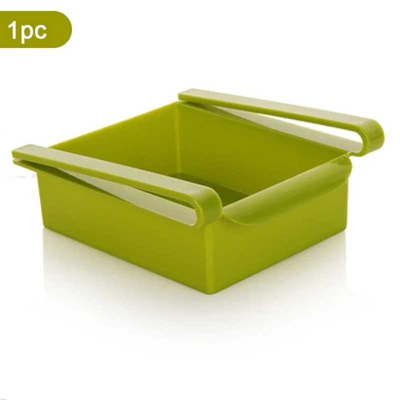 Slide Kitchen Fridge Freezer Storage Rack Feature: 1 This is a handy garage organizer for your refrigerator or kitchen 2 It retains your gadgets arranged and your refrigerator neat three Smooth design, easy to place/remove goods 4 It makes your refrigerator roomier and easier to store five Made of straw, it's non - toxic and put on - resistant 6 Make probably the most of your refrigerator, set up things and preserve them arranged 7 Cab can be utilized for refrigerator, kitchen pantry or for storing fruits, eggs, snacks, and so forth Specifics: Material: Resin,Plastic Color: Blue, Green, White Size: Show as photograph Size: 15*16*6 Package Included: 1pcs Fridge Storage Rack