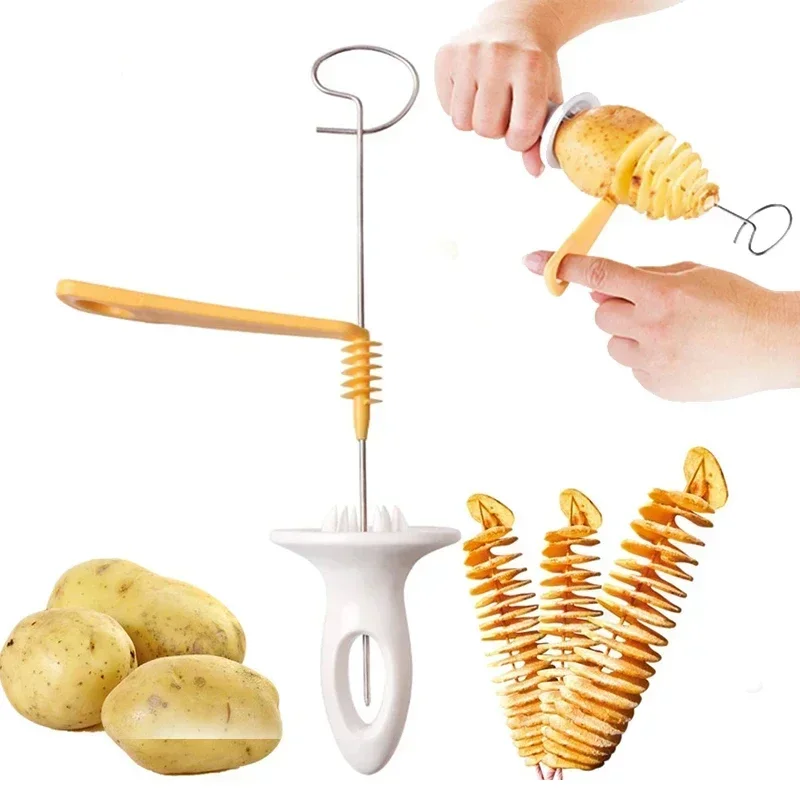 Rotate Potato Slicer 3 String Twisted Potato Slice Cutter Spiral DIY Manual Creative Kitchen Gadgets Vegetables Spiral Knife