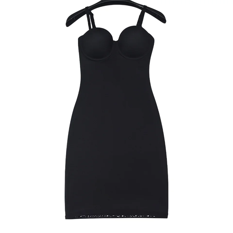 Sheath Flat Belly Woman Sexy Dress Slimming Body Female Shapewear Dresses Underwire Cup Black Upgraded Non-slip Hem