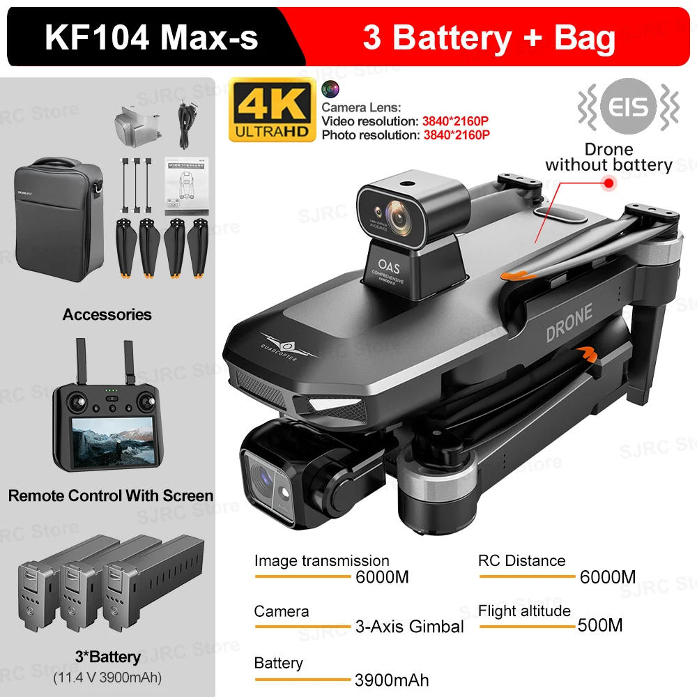 SJRC KF104 Max EIS Drone 4K Professional 3-Axis Gimbal Obstacle Avoidance 6KM Drones With Camera Foldable RC Quadcopte