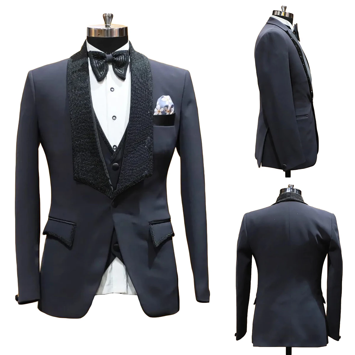 Sparkly Men's Suits Tailored 2 Pieces Blazer Vest One Button Wide Lapel Wedding Formal Beaded Slim Fit Custom Made Plus Size