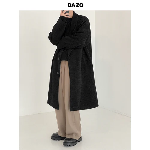 Spring and Autumn Long Oversized Coat Men Long Sleeve Single Breasted Loose Casual Korean Fashion Wool Blends Coats H97