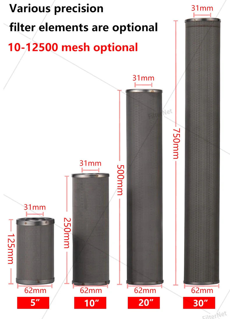 5" x 2"Stainless steel filter detail 10" x 2" Stainless steel clear out detail 20" x 2"Stainless steel filter out element 20 inch water clear out parts chrome steel filter out detail 50 micron/75 micron/270 micron/400 micron order default 50 micron (300 mesh) If you would like particular precision, please contact us The stainless steel filter out element in our shop is manufactured via welding, and there'll be welding elements in the course of the production job The welding features of the stainless steel filter element are the main parts formed during the welding activity The welding facets of the stainless-steel filter out detail are not rusty, but welding features The weld is a crucial a part of qc to ensure the quality of the welding points, which is a traditional phenomenon We are a factory, we will supply discounts for giant quantities, and support wholesale If you would like a pre-filter or a stainless-steel filter housing, you also can purchase it in our shop
